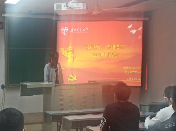 研究生之窗讯(记者 苏祺 摄影报道)2021年10月18日晚上6:40,球王会体育硕士第二党支部在逸夫馆4405B开展了“践行初心,勇担使命”主题党日活动。支部全体党员及部分入党积极分子参加了此次会议。