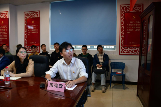 2020级硕士研究生周宪政就自身的科研、学生工作和志愿活动经历与现场师生分享。在他看来,二十大提出要加快建设制造强国、农业强国,机械学子是可以大有作为的,学生党员应当将理论与实践有机结合起来,积极投身于新时代新征程的奋斗当中。2019级本科生张展讲述了自己与机甲大事的故事,他认为机械学子要不放弃任何一个让自己锻炼的机会,更要努力挖掘自己的热爱,在筑牢专业基础的情况下,不断发展个人特长,做有理想、敢担当、能吃苦、肯奋斗的新时代好青年。