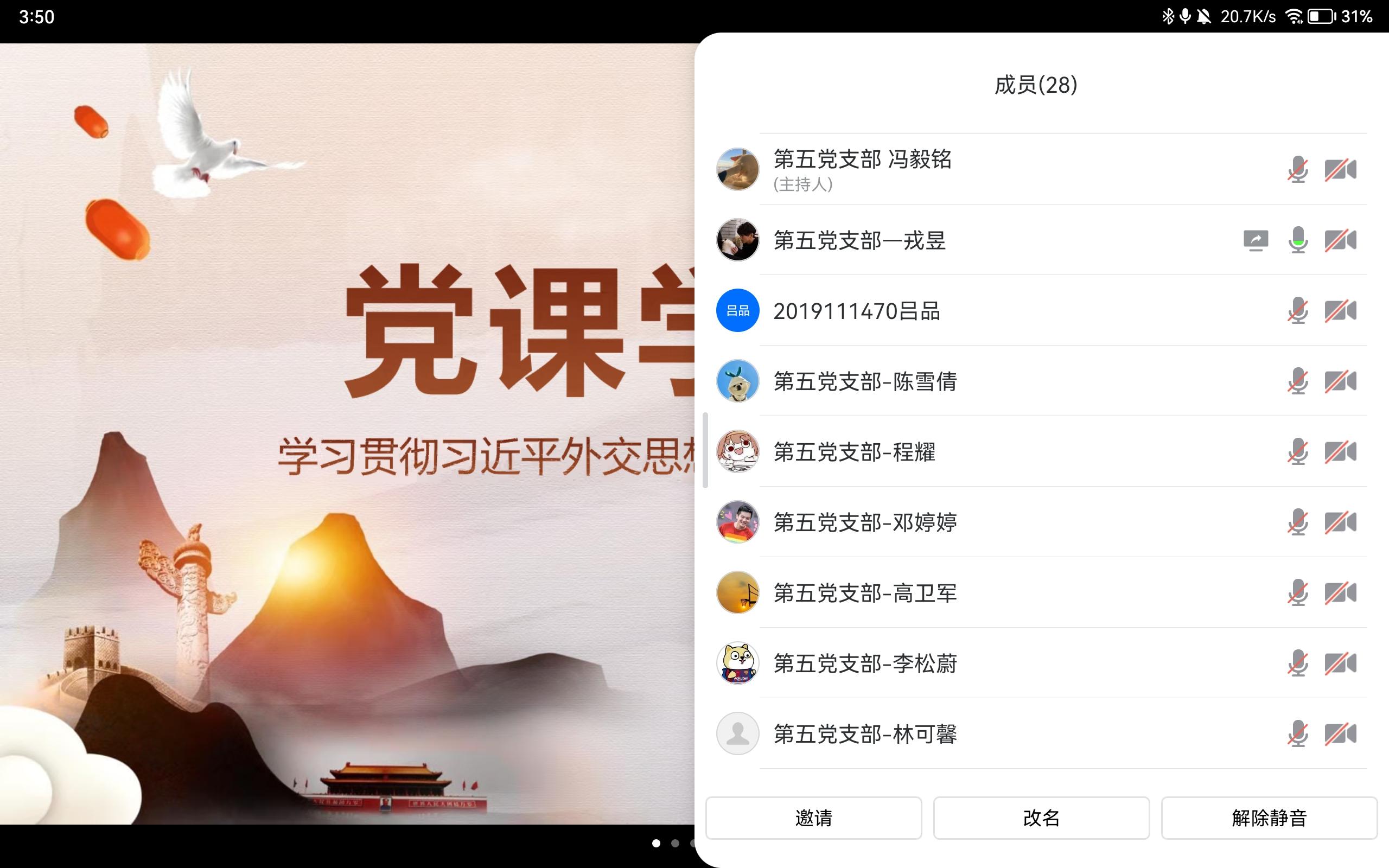 本次会议,主持人以线上会议的形式向大家播放本期节目,该期节目邀请外交部党委委员、副部长谢锋担任主讲人,以《学习贯彻习近平外交思想 推进中国特色大国外交》为题,以“六个感悟”为主线,沿着习近平总书记的外交足迹,领会习近平外交思想的核心要义和实践伟力。