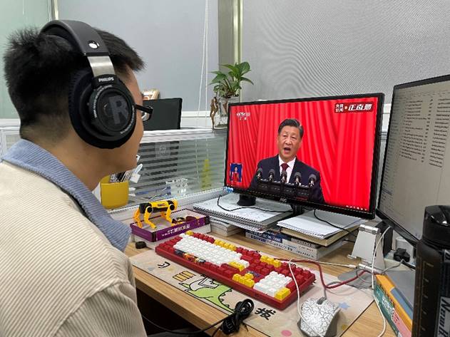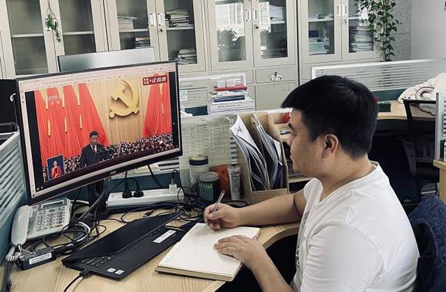 活动开始时,支部书记杨露同志要求大家认真听取党的二十大报告,参与活动的各位同志均积极响应,认真学习,并交流了学习感悟。
