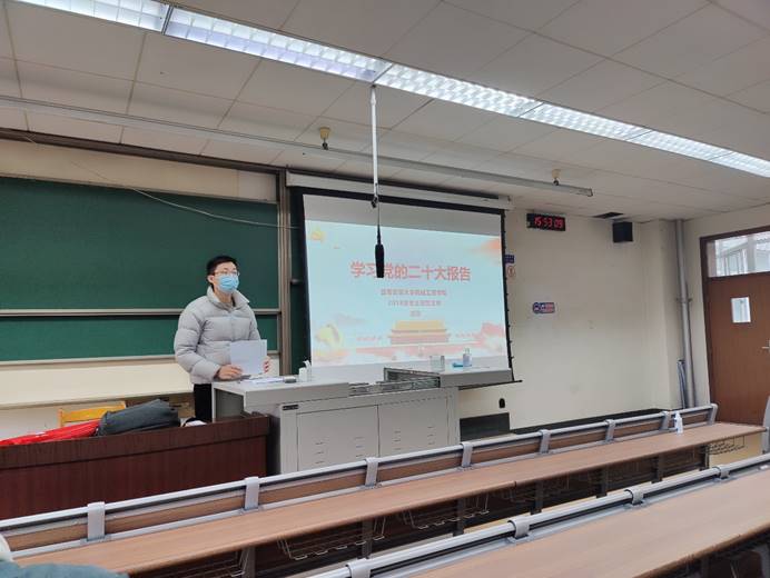 机械2018级博士班党支部书记胡家同志从自身经历出发分享了党的二十大学习感悟,以及表达了对江泽民同志的敬佩和纪念。胡家同志首先就二十大报告的主要内容作了简要陈述,然后结合博士研究生党员的身份从创新是第一动力和绿色发展几个方面详细展开论述,并分享了自身学习的感悟。胡家同志讲到,认真学习二十大报告、党史和时政等,不仅能丰富自身的理论知识储备、提升政治素养,也能从中学习到为人处事的哲学、获得全面发展。