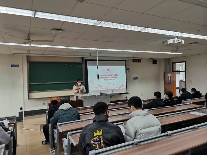 2022年12月09日,中共球王会官网球王会体育2021级博士班党支部开展“凝聚青春力量,奋斗下个百年”主题党日活动。活动内容共三项:讨论于耀翔、何添、王泓豪三位同志的转正事宜,“联学、联建、联动”学习党的二十大,以及“青春遇上二十大,交大机械青年说”——暨科研经验交流分享会。此次会议由党支部书记杨露同志主持。