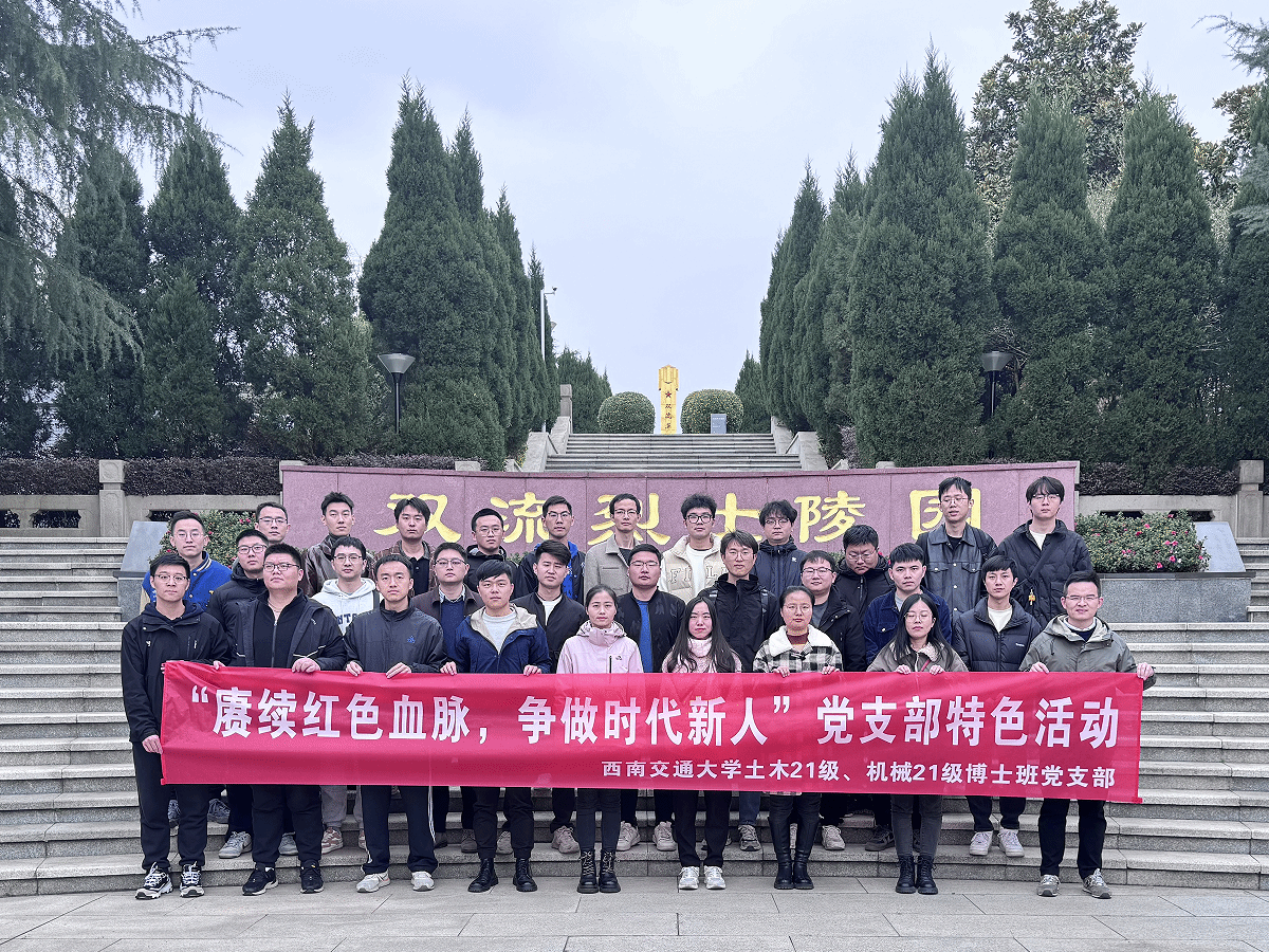 2023年12月01日,机械2021级博士班党支部与土木2021级博士班党支部共同前往双流烈士陵园开展了“赓续红色血脉,争做时代新人”党支部户外实践参观学习活动。机械2021级博士班党支部6名党员同志和4名入党积极分子参与了该活动。