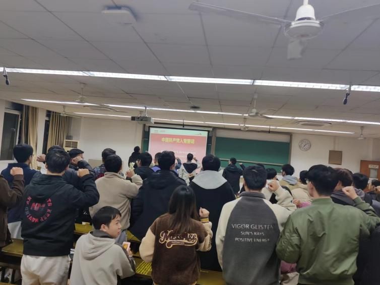 议程结束后,由彭镜缘同志和姚佳玉同志向与会正式党员发放无记名投票纸,经投票后收回投票纸并进行统计。统计结束后由党支部副书记殷应琦同志向党支部作出表决结果汇报,根据监票人的报告统计,大会实到有表决权的正式党员共计37名,发出表决票37张,收回表决票37张,表决有效。表决结果为:关于刘翔博同志接收为预备党员问题得赞成票37张,不赞成票0张,弃权票0张,表决有效;关于粟军霞同志接收为预备党员问题得赞成票37张,不赞成票0张,弃权票0张,表决有效;关于章澜夕同志接收为预备党员问题得赞成票37张,不赞成票0张,弃权票0张,表决有效;关于胡豪同志接收为预备党员问题得赞成票37张,不赞成票0张,弃权票0张,表决有效;关于严腾飞同志接收为预备党员问题得赞成票37张,不赞成票0张,弃权票0张,表决有效。经支部大会无记名投票表决,对刘翔博、粟军霞、章澜夕、胡豪、严腾飞五位同志得赞成人数超过应到会有表决权的正式党员的半数,同意五位同志按期接收为中共预备党员。随后,由殷应琦同志带领刘翔博、粟军霞、章澜夕、胡豪、严腾飞五位同志及与会的所有同志庄严的进行了入党宣誓。