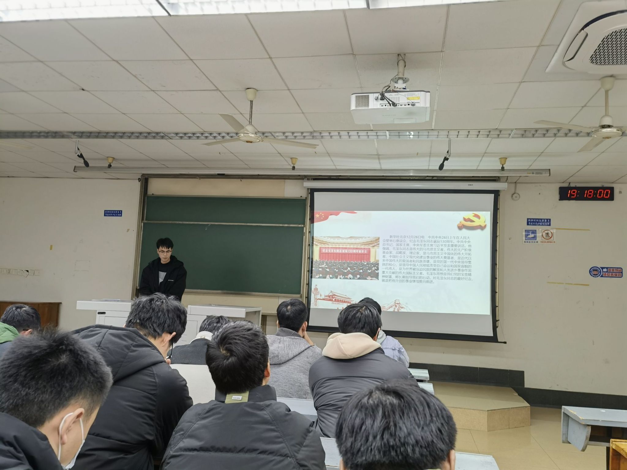 2023年12月27日,球王会体育硕士第一党支部在九里校区4号教学楼J4407B举行支部大会。活动内容共三项:第一项:集中学习观看《网赌网贷》教育警示片以及《永远在路上》纪录片;第二项:缅怀永远的伟人:学习习近平总书记在毛泽东同志诞辰130周年座谈会重要讲话;第三项:讨论范书伟、魏丞耀、杨宜儒、崔陈、谷熙、彭志成、田昊、王栩、吴刚九位党员同志的转正事宜。本次会议由曾鸿同志主持。
