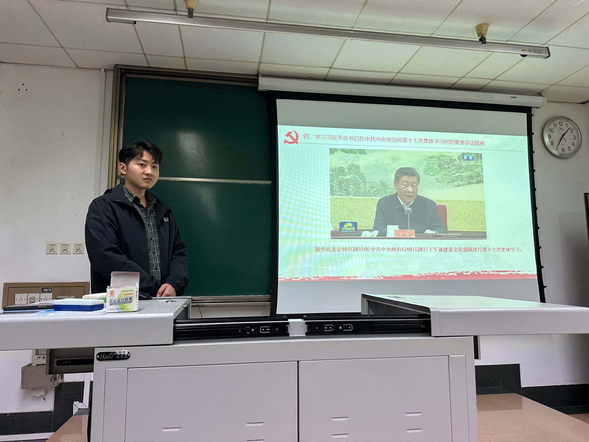 研究生之窗讯(记者 房彦江 摄影报道)2024年11月22日,球王会体育硕士第一党支部在九里校区4号教学楼J4222召开支部大会。活动内容共五项:第一项:学习习近平总书记在省部级主要领导干部学习贯彻党的二十届三中全会精神专题研讨班上的重要讲话精神;第二项:学习习近平总书记给中国国际大学生创新大赛参赛学生代表和中国海洋大学全体师生的重要回信精神;第三项:习近平总书记《促进高质量充分就业》重要文章精神。第四项:学习习近平总书记在中共中央政治局第十七次集体学习时的重要讲话精神。第五项:习近平总书记《在文艺工作座谈会上的讲话》。本次会议由张富坤同志主持。