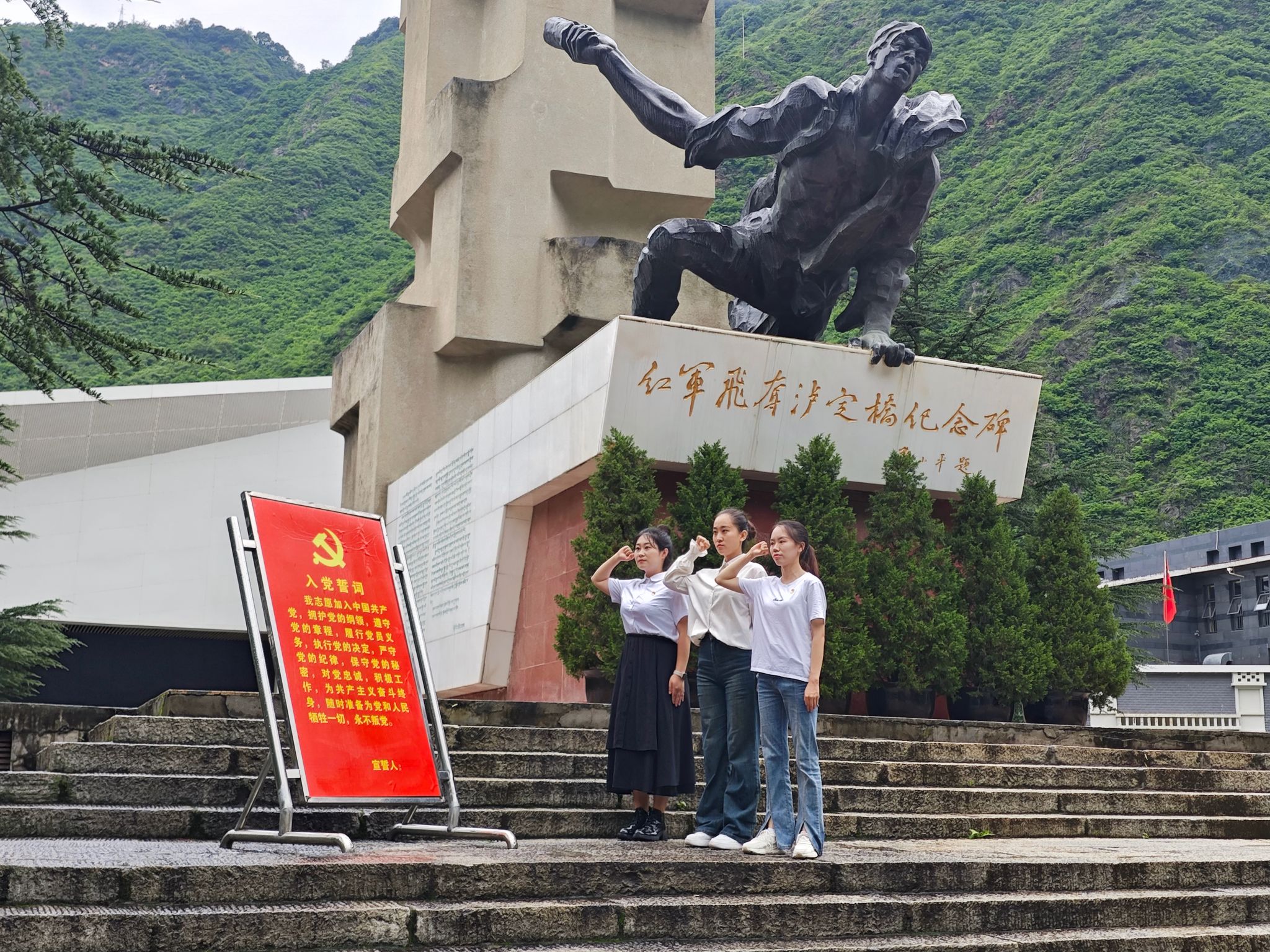第九党支部调研小组还来到了泸定桥纪念馆,通过讲解员的生动精彩讲解,我们对这场夺桥战斗的前后经过和对红军长征的重要意义有了更深刻的理解。讲解员的生动讲述让这段历史彷佛浮现在眼前,22名勇士们的英雄气概至今仍然震撼人心。是他们用勇气和鲜血创造了飞夺泸定桥的奇迹,为红军北上抗日打开了通道。