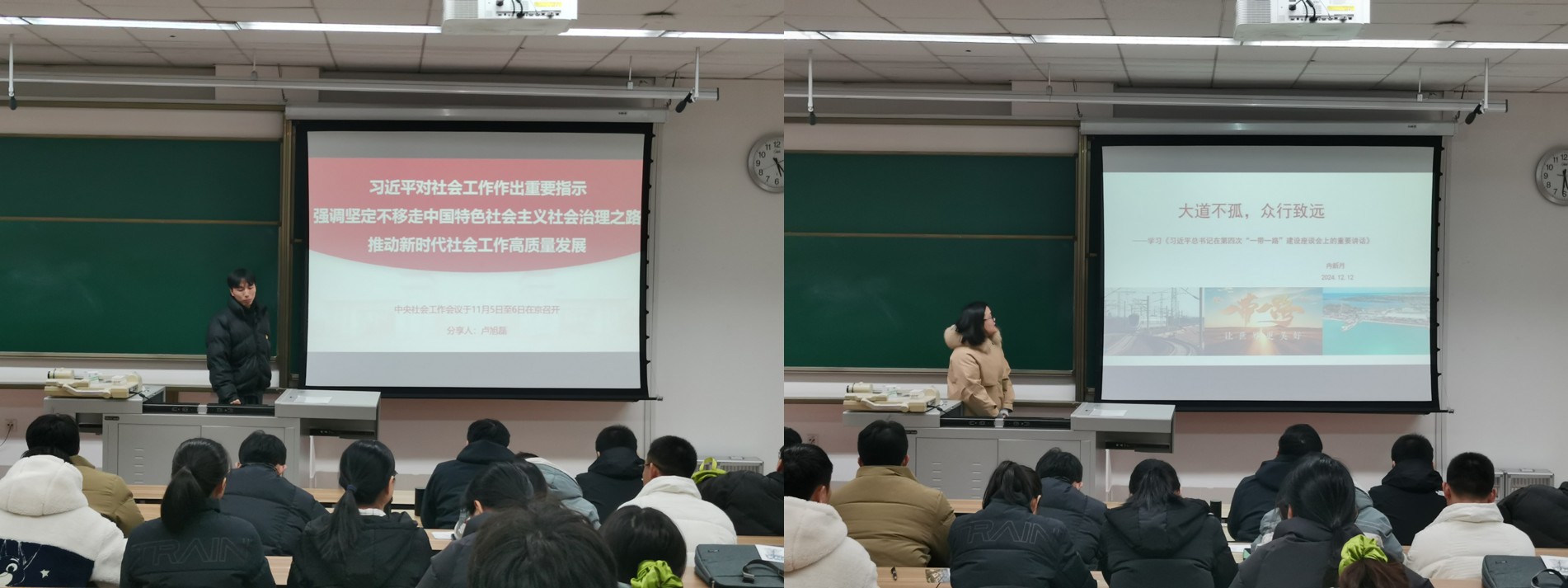 马克思主义学院博士党支部冉新月同志作了《习近平总书记在第四次“一带一路”建设工作座谈会上的重要讲话》的分享,详细解读了“一带一路”倡议对我国对外开放及全球合作的重要意义。指出,党员应增强全球视野,在推动“一带一路”倡议实施的过程中,积极为国家和世界的发展贡献力量。