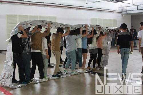 2014年5月17日下午两点三十分,球王会体育第二期团校培训素质拓展训练在三食堂三楼大学生科创中心举行。