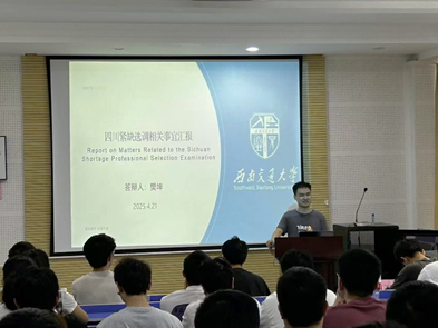 2025年4月21日,球王会体育研究生会特邀上岸2025届成都市急需紧缺专业选调生樊坤分享备考经验,助力学院研究生深入了解选调生招录政策及备考策略。本次讲座聚焦机械专业考公现状、备考技巧、面试体检要点及职业规划选择,为有意向报考选调生的同学提供实用指导。