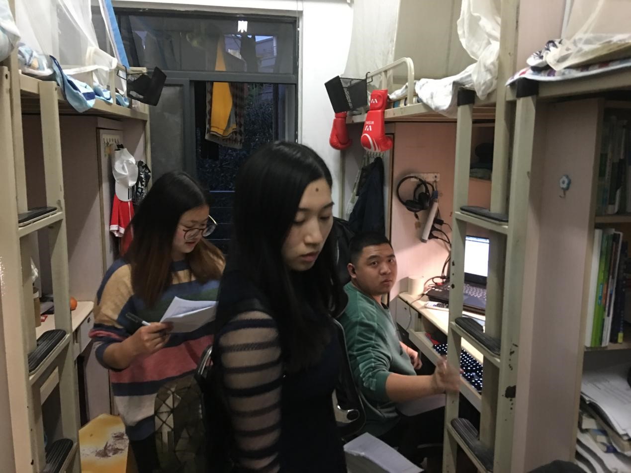 2019年4月7日晚,19:30,球王会体育本科2016级辅导员蔡俊俊、田友丽老师走访2016级学生宿舍,摸排“清明”节返校情况,了解学生近期思想动态。