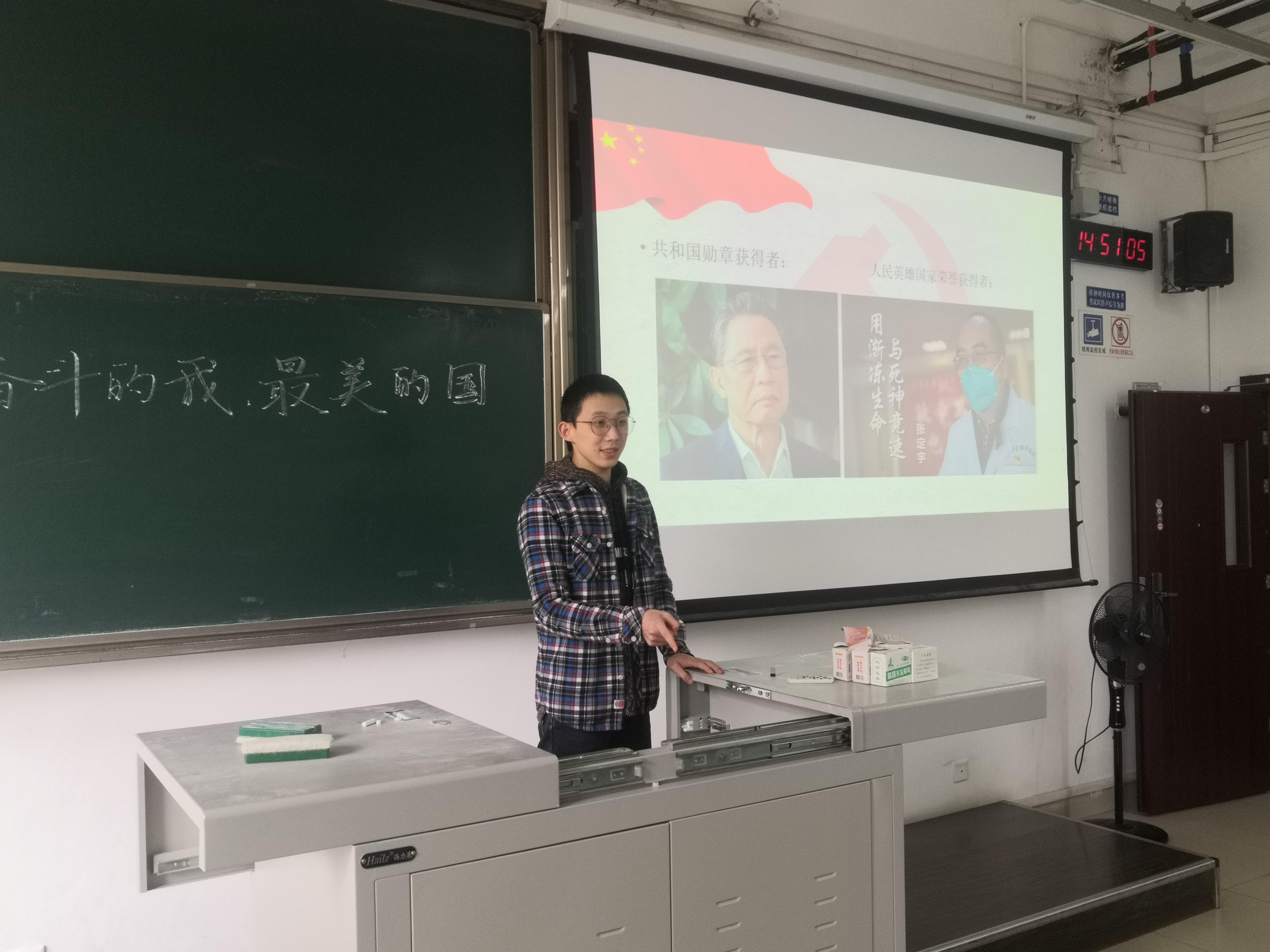 活动由本支部三位同学以讲故事的方式进行,分别对共和国勋章获得者钟南山院士,陈薇院士,以及人民英雄国家荣誉获得者张定宇副主任三位前辈进行了介绍: