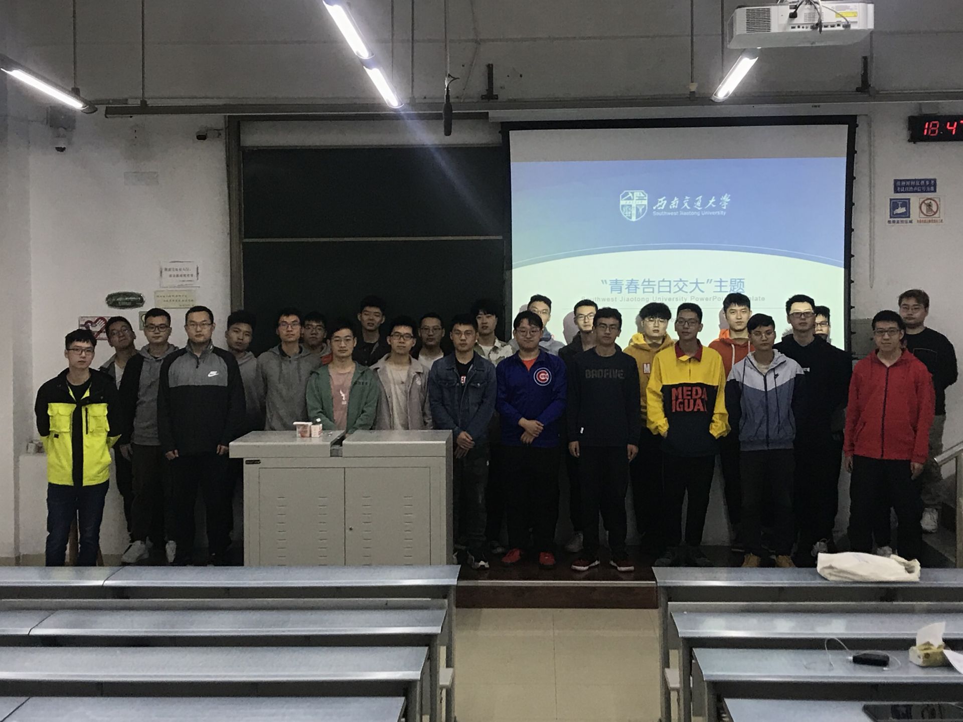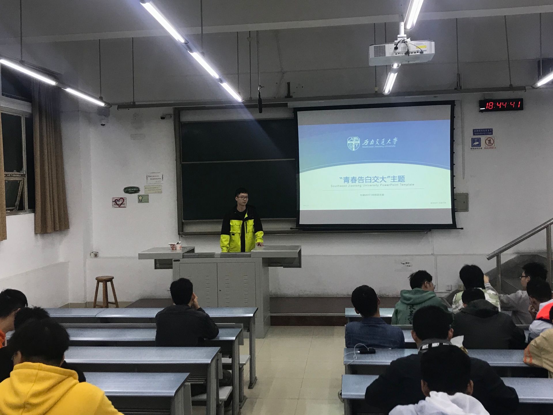 活动于晚上7点开始,参加活动人数31人,组织进行签到记录。团支部书记杨文昊首先致开场词,强调了在新中国成立71周年与建党一百周年的重要时刻的背景下,作为新时代新青年的我们要始终牢记中华民族伟大复兴的伟大使命,要理解习近平总书记在党的十九大报告中指出的“青年兴则国家兴,青年强则国家强。青年一代有理想、有本领、有担当,国家就有前途,民族就有希望。中国梦是历史的、现实的,也是未来的;是我们这一代的,更是青年一代的。中华民族伟大复兴的中国梦终将在一代代青年的接力奋斗中变成现实。”的深刻含义。在这里程碑的时刻,我们青年要不断地充实自己,而交大就是在不断地为祖国培养出色的青年人才,为新中国的交通事业作出了巨大的贡献,我们作为交大学子借此机会为交大告白。开场词后,班长同晓阳带领大家重温了交大历史,从1896年到今天,学校经过多次搬迁,成为了如今的球王会官网,学校的历史是悠久的,是伟大的,竢实扬华的交大精神没有被遗失,而是深深地刻在了每一个交大人的心中。同时,同晓阳也为我们介绍了杰出的西南交大校友与毕业学长学姐的优秀事迹,鼓励车辆5班的各位同学在毕业季到来之时,也能很好地为自己的未来做好打算,以后也能成为对社会有贡献的人。班长致辞完毕后,全班同学对交大各自进行了讨论与告白,其中孙建同学上台为大家介绍了交大在科研领域的重大成就,期望大家以后也能在机械等领域有着自己的一番作为,成为一名合格的交大人、机械人。