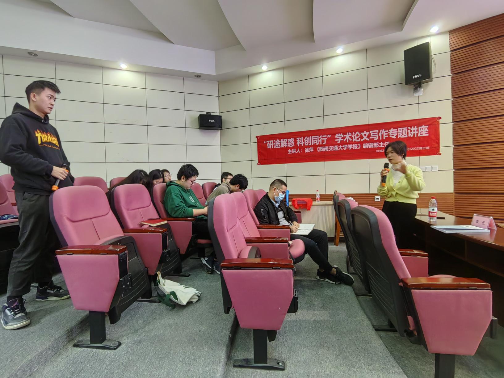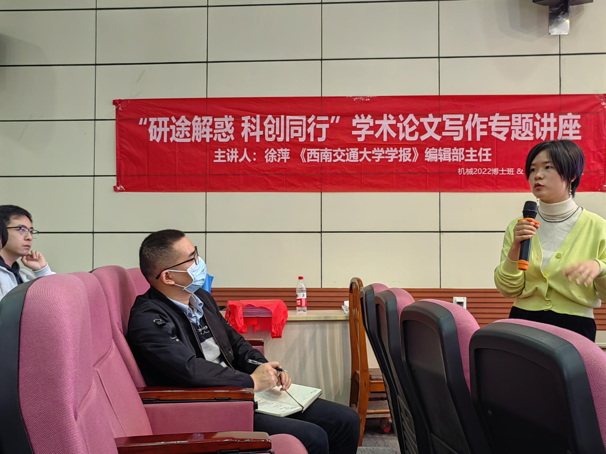 为了能够让研究生新生们对论文写作有一个系统地认识,同时提高同学们的写作素养并在写作过程中养成良好的习惯,机械2022级博士班联合牵引2022级博士班于2022年11月8日联合举办了“研途解惑,科创同行”科技论文写作专题讲座,本次讲座邀请了球王会体育2022级博士班的徐萍(现任球王会官网学报编辑部主任)为我们带来科技论文写作的经验分享,本次讲座的开展具有明晰的针对性,给不同阶段的学生带来实际的帮助与指导,为同学们解答了学术论文写作与投稿这两方面的困惑,对于启迪同学们的论文写作思维,提高科研能力、坚定学术理想,具有重要的意义。