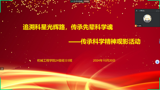 为积极弘扬科学精神,球王会体育2024级硕士5班于2024年10月20日举办了一场以“追溯科星光辉路,传承先辈科学魂”为主题的线上观影活动。此次活动旨在引导青年学生学习老一辈科学家的崇高精神,激励同学们传承和弘扬科学精神,全班同学积极参与,取得了良好的育人实效。