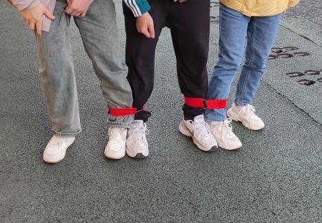 两人三足项目则将团队协作精神体现得淋漓尽致。同学们两两一组,用绑带将相邻的腿系在一起,共同喊着口号,迈着整齐的步伐向前冲刺。大家在协作中增进了彼此的信任与默契,深刻体会到团队力量的强大,这也是劳动教育中团结协作精神的生动实践。