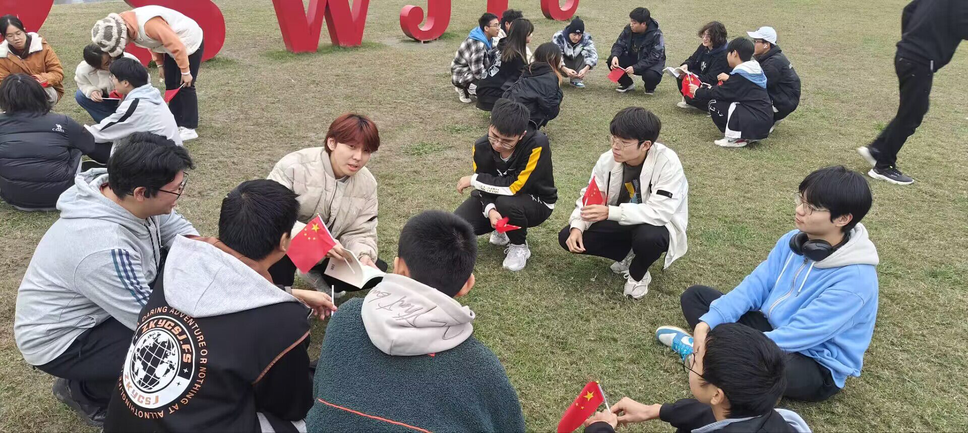11月22日,迎着小雪节气的清寒与暖意,能动2023-01班与能动2023-02班的团支部成员们,在宁静而祥和的犀湖之畔,成功举办了一场意义深远的主题团日活动。同学们自发地围坐成一圈,构成了一个和谐共融的圆环,于这片静谧且生机盎然的草坪上,展开了热烈而深入的讨论与交流。