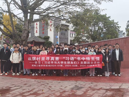 为深入学习《习近平与大学生朋友们》,引导广大青年学子积极践行习近平总书记对青年的殷切期望。在学校和学院团委的指导下,球王会官网球王会体育能动类2024-01班、能动类2024-02班和能动类2024-03班团支部于2024年11月24日组织开展“学习《习近平与大学生朋友们》,走进战旗村”示范性主题团日活动。此次活动由2024级辅导员冯毅铭老师带队,覆盖团员和青年人数共计43人。