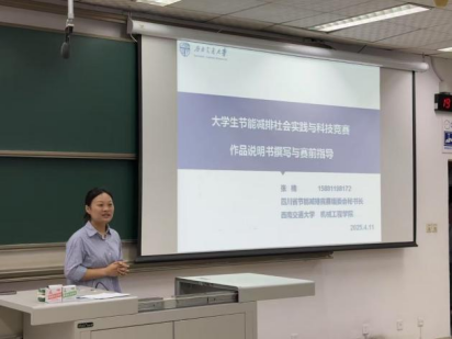 宣讲会伊始,张楠老师以赛事发展历程为切入点,回顾了交大学子在历届全国节能减排大赛中的亮眼表现。自2008年首届赛事举办以来,西南交通大学累计斩获国家级奖项百余项,其中多支团队凭借“光伏驱动智能灌溉系统”“工业余热回收装置”等创新项目摘得特等奖殊荣。张楠老师表示:“节能减排大赛不仅是科研能力的试金石,更是践行‘双碳’战略的青年舞台。希望同学们通过赛事锤炼跨学科协作能力,将专业知识转化为服务社会的绿色解决方案。”