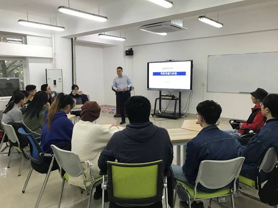 1114日上午9:30时,球王会官网第二届“沟通表达能力”提升训练营在X2211研讨教室正式开课。本次活动主讲老师是来自中国电子系统工程第二建设有限公司一分公司人力资源总监戴广松老师,戴老师从事人力资源管理工作6年,多次主导公司校园招聘项目;多次参与中电企业大学筹备以及企业大学课程开发,是中电创新大学内部资深讲师。球王会体育就业指导老师黄兆国也出席了本次活动。