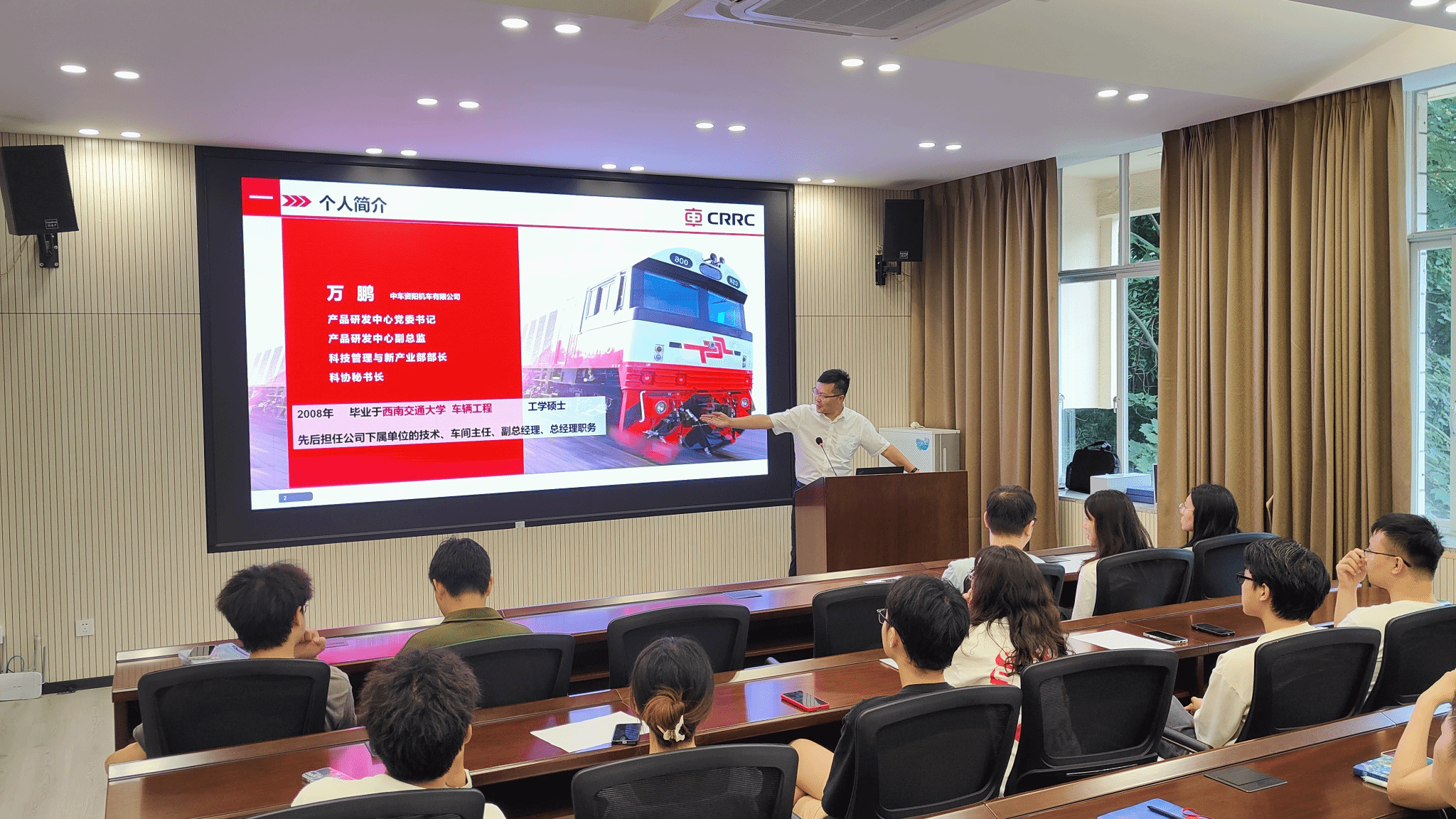 此次活动受邀的嘉宾万鹏,2008年硕士毕业于球王会官网车辆工程专业,现任中车资阳机车有限公司产品研发中心党委书记、产品研发中心副总监、科技管理与新产业部部长、科协秘书长。