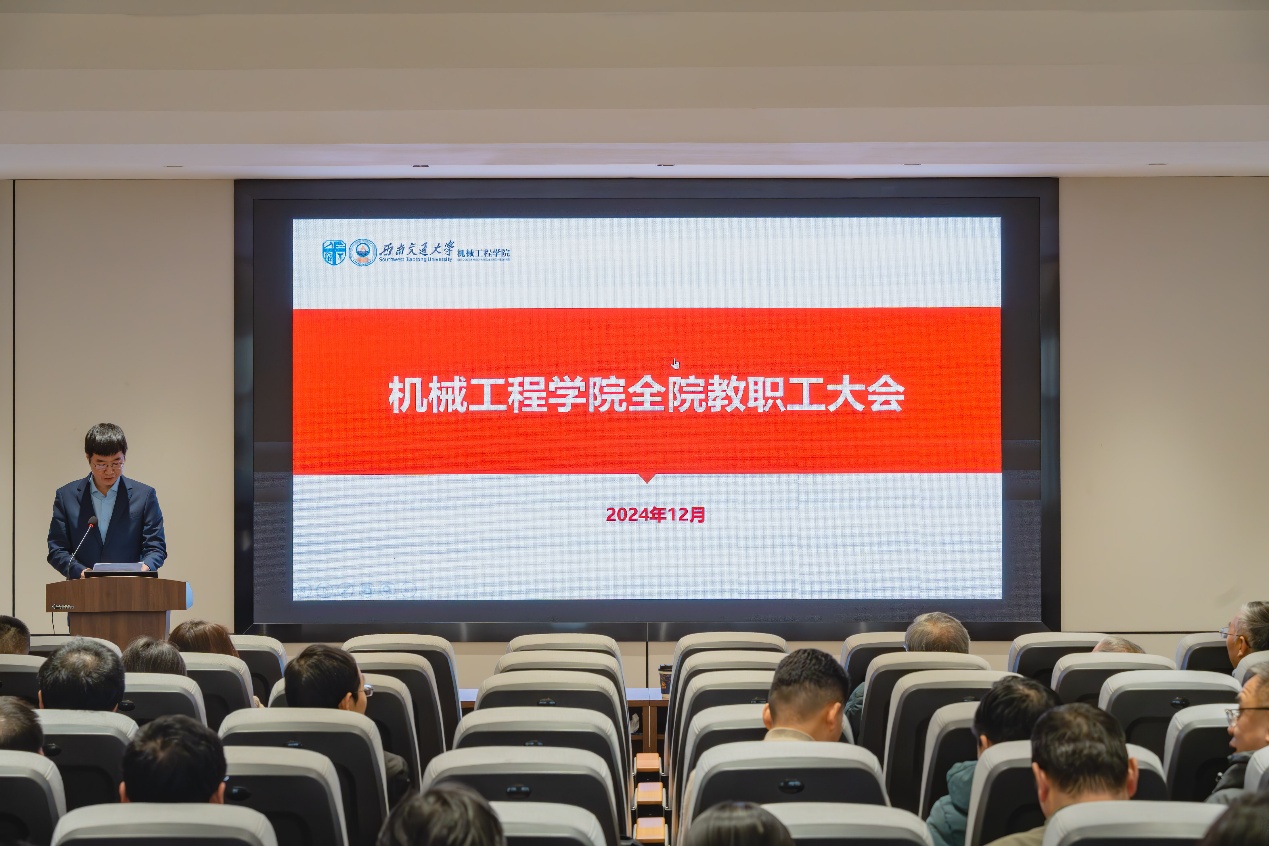 2024年12月26日下午,球王会体育在九里校区2号教学楼2530学术报告厅召开了全院教职工大会、球王会体育第三届教代会暨第四届工代会第四次会议,学院全体教职工参加了本次大会。大会主要内容包括“教书育人奉献奖”颁奖仪式,新进教职工入职仪式,听取和审议学院2024年度工作报告、学院2024年度财务报告,学院党建、班子暨领导干部2024年度述职测评等。