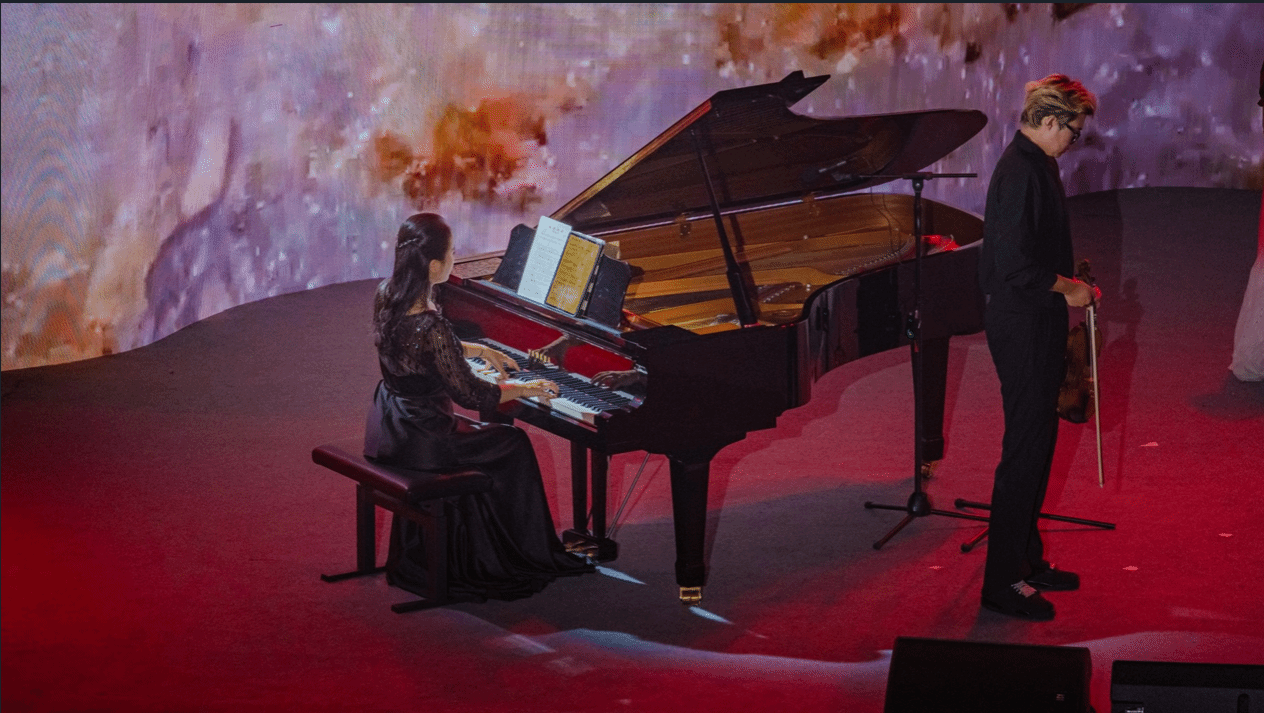 带着坚毅的眼神,踏着坚定的步伐,机械学院的师生们走上了舞台。“长城蜿蜒诉说着中华民族的坚韧不屈,泰山形状绵延着华夏人民的勇毅和果敢祖国……”,在钱院长和袁书记的朗诵中,球王会体育演唱的《祖国慈祥的母亲》正式开幕,指挥人轻轻抬起的手下,同学们激昂的声音从胸腔喷涌而出,钢琴与古筝的结合,展现学院兼容并包的品质。“听吧新征程号角吹响”爱国歌曲的奏响,诉说着一代人对祖国的衷情。在悠扬激荡的旋律声中,球王会体育的演出圆满落下帷幕。