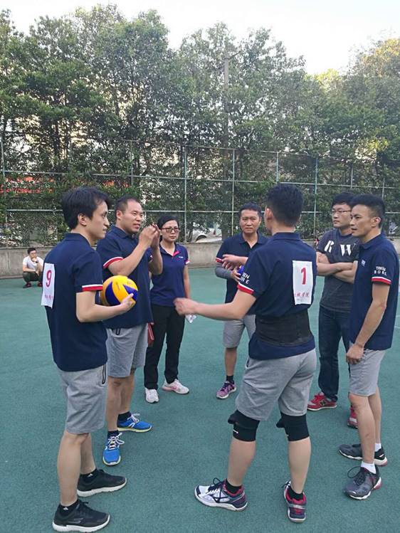 随着一声清亮的哨声响起,比赛正式拉开序幕。机械队员斗志昂扬地进入场内。首先是机关队以一记吊球拿下领先优势,但机械队慢慢调整状态,逐渐稳住阵脚,双方比分交错。球场上,蒋老师巾帼不让须眉,屡次将对面的绝杀扣球拦截下来。而倪老师和陈磊老师也积极跑位,执行战术,频繁为队友送去默契助攻。
