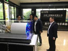进入企业大厅,一台现代化的盾构机模型映入眼帘,中铁工服总工章龙管副总经理向我们简要介绍了盾构机的运行原理,紧接着,来到中铁工服有限公司掘进机5D技术中心,首先视频介绍了中铁工服的发展历程、技术服务内容、取得的成绩荣誉等;然后通过视频详细介绍了掘进机的工作原理,让我们对于现代化掘进技术的发展有了充分的认识和了解;最后展示了中铁工服自主研发的盾构机远程在线监测云平台,可以实时监测加入云平台的盾构机的运行状况,确保掘进过程顺利进行。