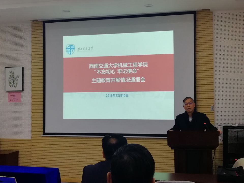 然后,董书记对机械学院“不忘初心 牢记使命”主题教育开展情况进行了通报。学院成立主题教育工作小组,召开全院教职工大会进行宣讲动员,组织中层领导干部和各党支部采取“专家导学、集中研学、个人自学”的方式进行学习,认真领会主题教育的必要性和重要性。设立了党员先锋岗和党员责任区,设岗定责,承诺践诺。制定了主题教育工作方案,按照学习教育、调查研究、检视问题、整改落实贯穿全过程的要求,从学院党委、中层领导班子和领导干部、学院师生党支部三个层面全面组织推进落实。