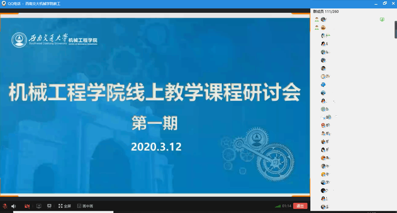 2020年3月12日下午14:30,学院采用教工QQ群举行课程线上教学研讨会,旨在搭建教师交流平台,总结线上教学经验,探索线上、线下混合式教学模式改革,提升线上教学质量。研讨会由副院长田怀文主持,各系所教研室共计130余名教师通过QQ网络直播参与线上教学研讨会。