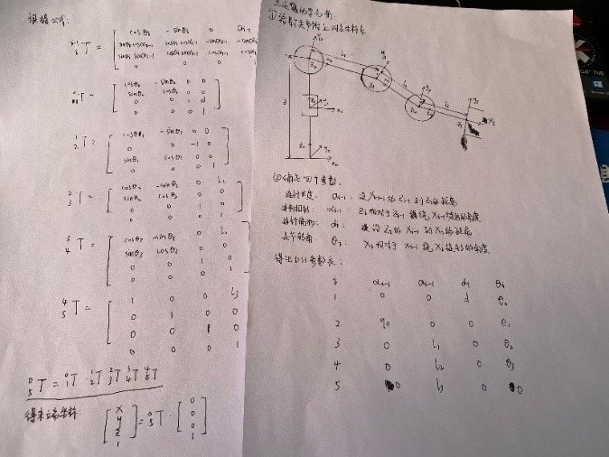 先对机械臂进行了正运动学求解,由于在实际使用过程中逆运动学求解使用较多,因此又对机械臂进行了详细的逆运动学求解,建立模型如下: