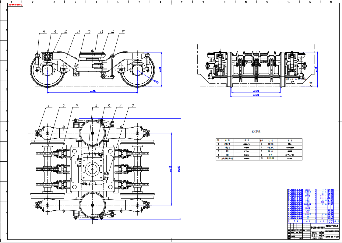4.根据转向架三维模型,完成转向架A0总图和构架A0图初步绘制工作。