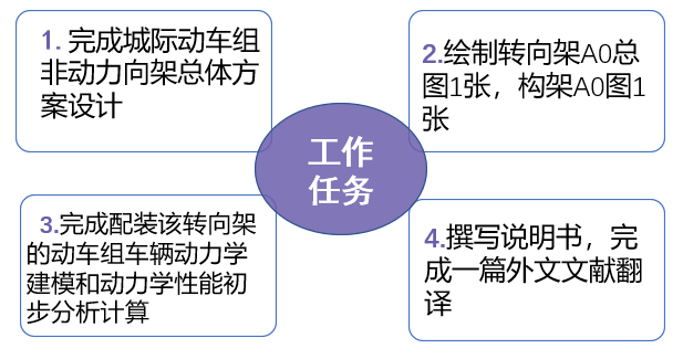 本选题要求学生在完成非动力转向架总体方案设计的基础上,完成动车组车辆动力学建模与动力学性能初步分析计算。过程中可以锻炼学生对转向架的设计和分析能力,培养学生利用Simpack软件对工程问题进行建模分析的能力,提高综合利用所学知识解决工程实际问题的能力,使学生得到工程设计方法和科研能力的初步训练。同时也可以培养学生正确的工程设计思想和理论联系实际的工作作风,对学生今后从事实际工程项目的分析、研究、设计等方面的工作有一定的帮助。