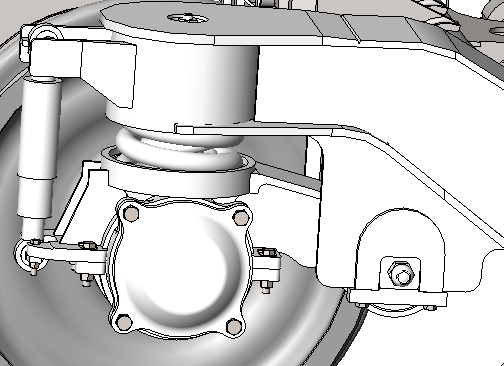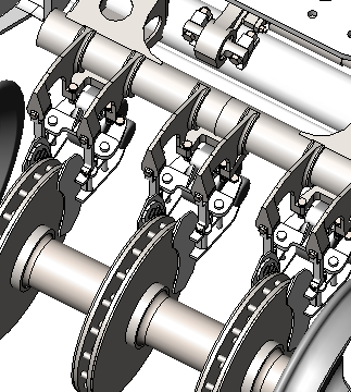 采用气动轴盘制动 ,每轴装有3套制动盘,制动夹钳悬挂方式采用三点式悬挂。