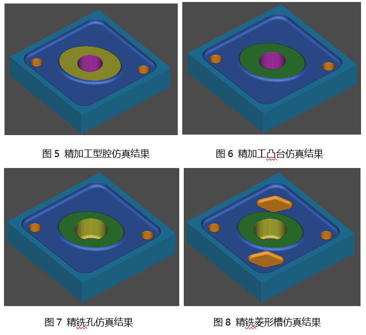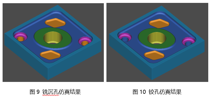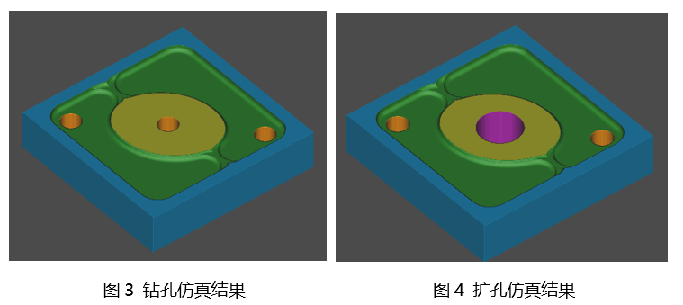 回答:主要是针对精加工凸台仿真工序和精铣孔仿真工序。原因是在精加工工序时,设置特征几何体和切削参数时,没有考虑到以及钻孔的区域,导致刀具在