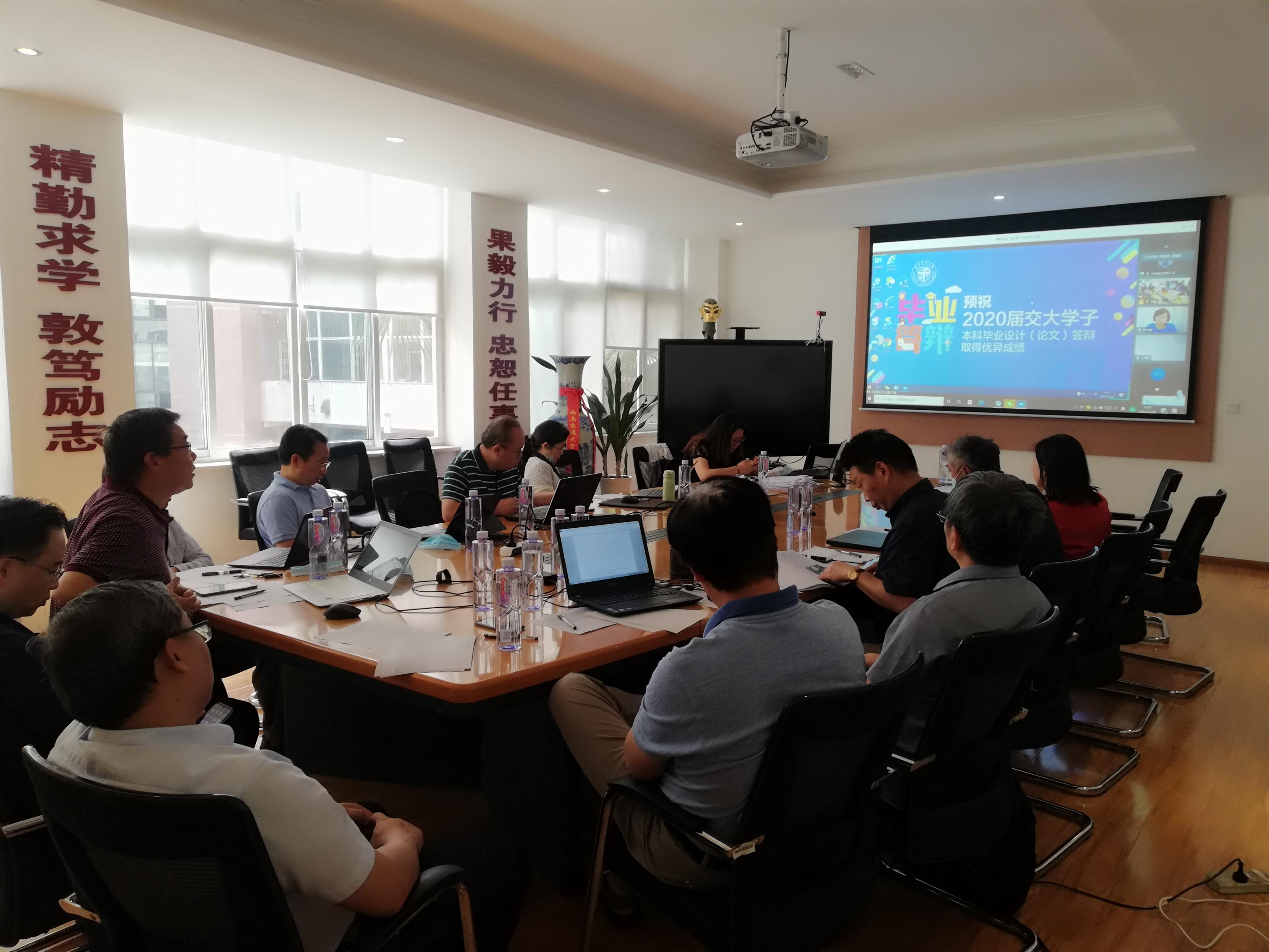 答辩开始前,所有答辩评委集中在九里2206会议室进行答辩委员工作会议。田怀文首先致开场辞,对所有参与校抽样答辩的评委老师表示感谢并布置本次答辩工作,强调本次答辩活动的意义是对学生大学四年学习成果的检验,希望各位评委能善于发现并提出同学们论文中的不足,督促同学们加以改正。董大伟提到校抽样答辩是对学院面上答辩工作的示范,希望答辩评委做到公平、公正,积极展示交大良好的师风。随后,钱林茂对毕业设计和期末考试提出了一些要求,提醒指导教师在疫情的特殊情况下要积极确保毕业设计质量,可以通过调整内容布局、完善论文细节等进行质量的补充,要通过毕业设计体现学院双万专业水准。针对非毕业年级课程考试工作,钱林茂建议各系所教研室要在假期开展针对性的复习,帮助学生进行知识的巩固和提升,以便顺利完成本学期考试工作。