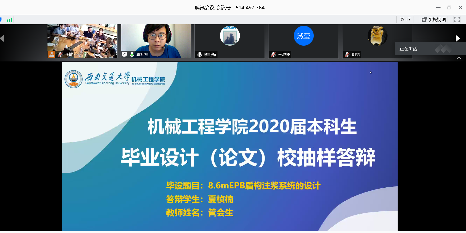 上午9时30分,校抽样答辩正式开始,评委分成两组在九里2206和2217教室进行。本次答辩分为两个环节,学生答辩时间20分钟,评委提问10分钟。校抽样答辩学生通过屏幕分享的方式向各位老师展示自己毕业设计并介绍包括课题方向、思路目标、总结验证、未来展望等多方面内容,充分地向评委展示出自己大学四年的学习成果。在每名同学答辩结束后,评委老师会宣读评阅人意见并对论文内容提出一些问题和修改建议,提醒同学们注意论文格式,注意模型合理性,使用真实实验数据并注明论文引用出处等。
