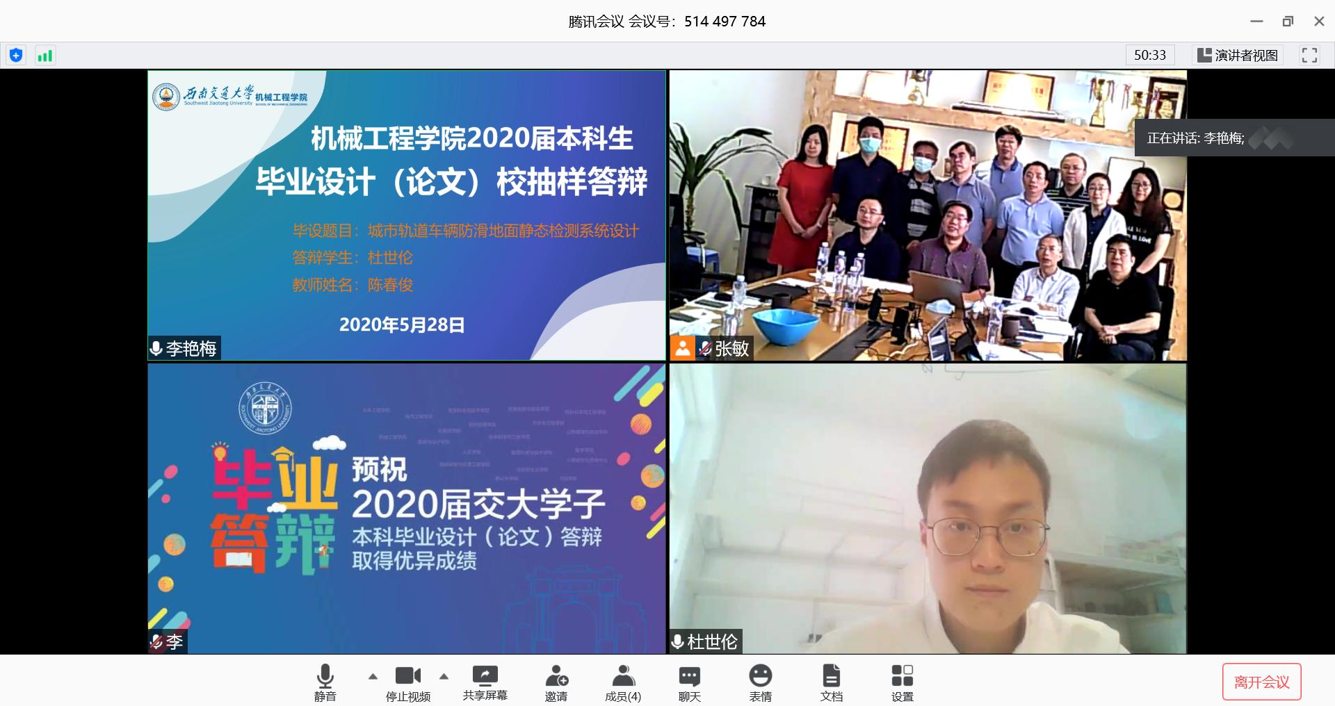 2020年5月28日上午9时,球王会官网球王会体育2020届本科生毕业设计(论文)校抽样答辩在腾讯会议中进行。为深入贯彻落实教育部和四川省教育厅应对新型冠状病毒肺炎疫情防控工作要求,按照学校通知,本次答辩采取学生线上答辩,评委集中评阅的形式。学院党委书记董大伟、院长钱林茂担任组长并全程参与,院质保委主任程文明、副主任杨美传担任答辩副组长,副院长田怀文、副院长丁国富、质保委员秦萍、周斌、陈春俊,系所教研室主任及教师代表等多位答辩委员、十名校抽样学生参与本次答辩,学院面上答辩组长、答辩秘书和2020届毕业生通过线上会议旁听答辩。