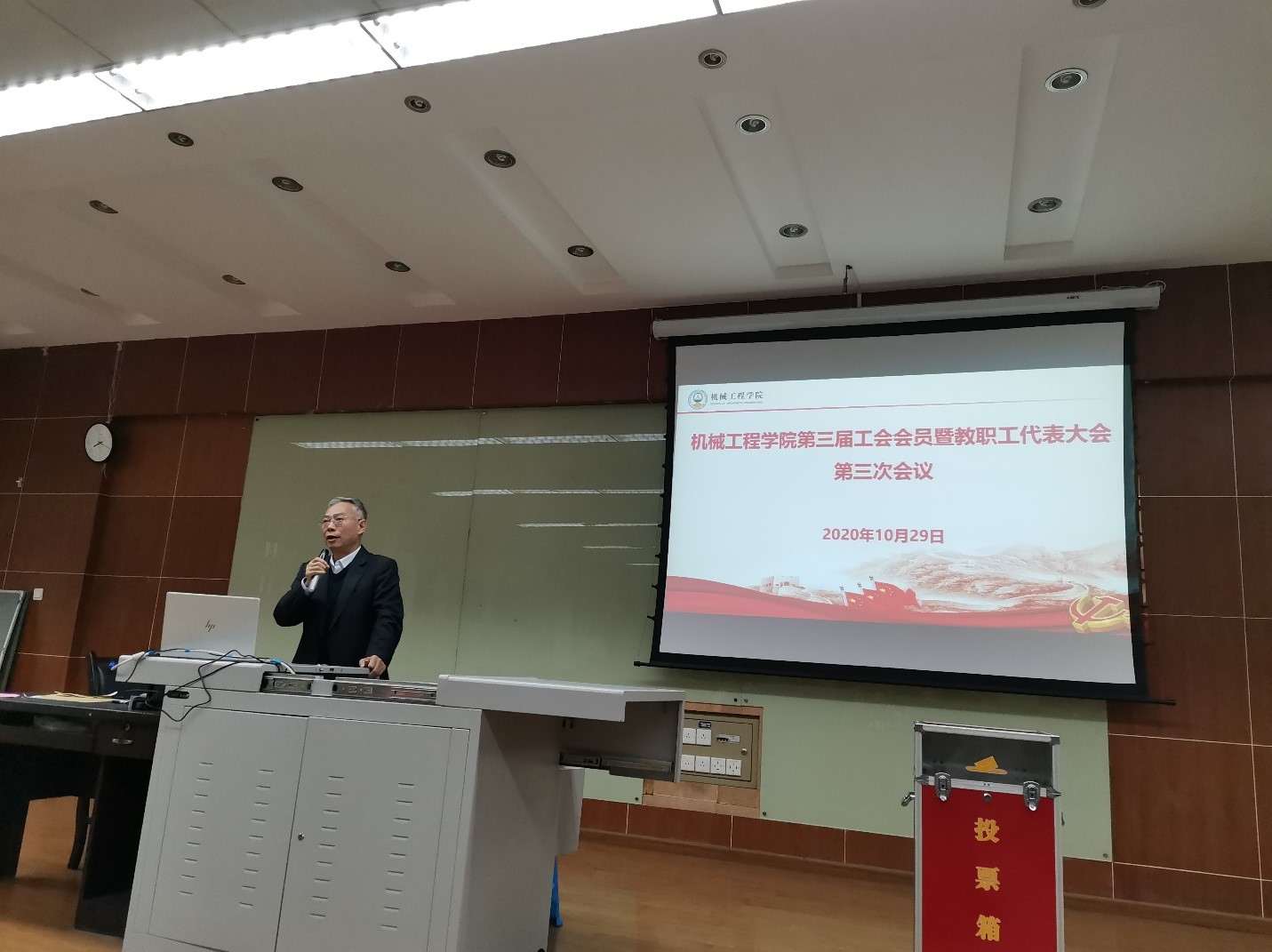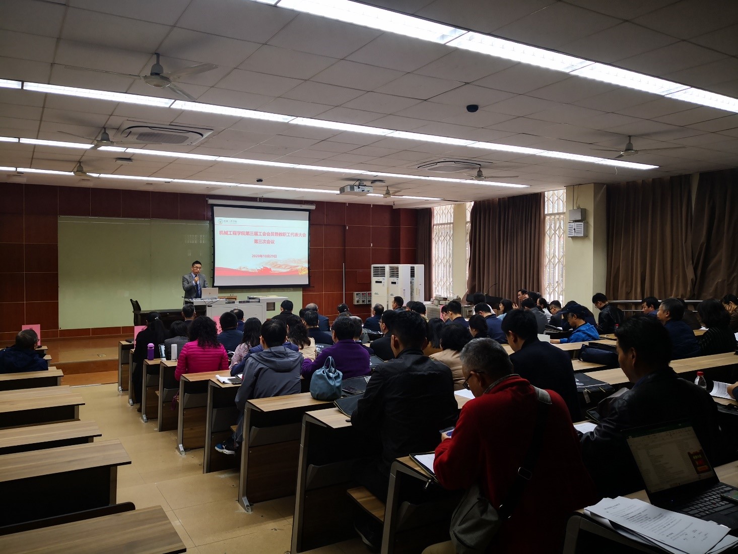 2020年10月29日下午,在九里校区逸夫馆4104,召开了球王会体育第三届工会会员暨教职工代表大会第三次会议。出席会议的有学院双代会代表及特邀嘉宾。会议由学院党委副书记、纪委书记程军主持。