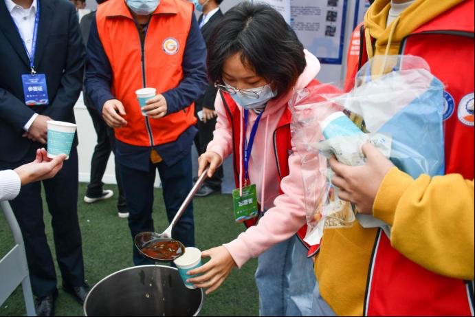 11月21日,比赛正式开始,志愿者们分组举牌引导评委来到指定地点进行现场评议。适逢成都降温,志愿者们为评委老师和参赛队员送上熬好的姜汤,姜汤作伴,温暖脾胃,让这场技术盛事更显温情。
