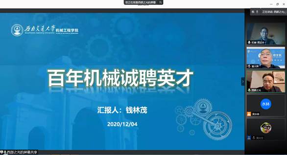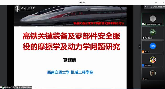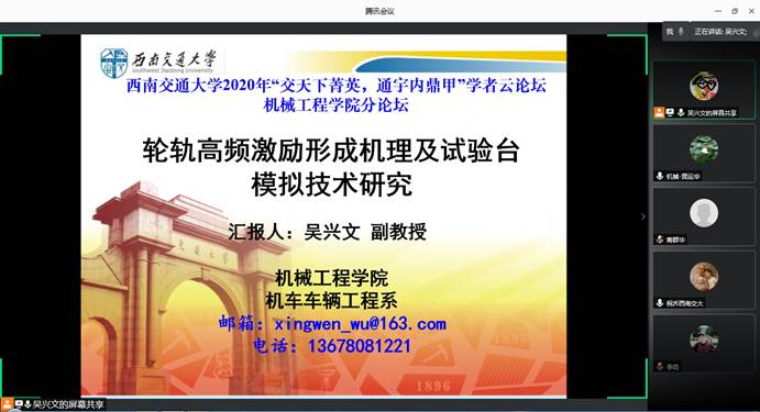 2020年12月4日晚,由球王会体育机车车辆工程系、热能动力与汽车工程系承办的球王会官网2020年“交天下菁英,通宇内鼎甲”学者云论坛球王会体育分论坛通过腾讯会议顺利举行。学校人事处师资管理办公室(职称改革工作办公室)石剑虹主任,学院党委书记董大伟教授、院长钱林茂教授及相关老师,海内外青年学者等出席了会议,会议由机车车辆工程系黄运华副研究员主持。