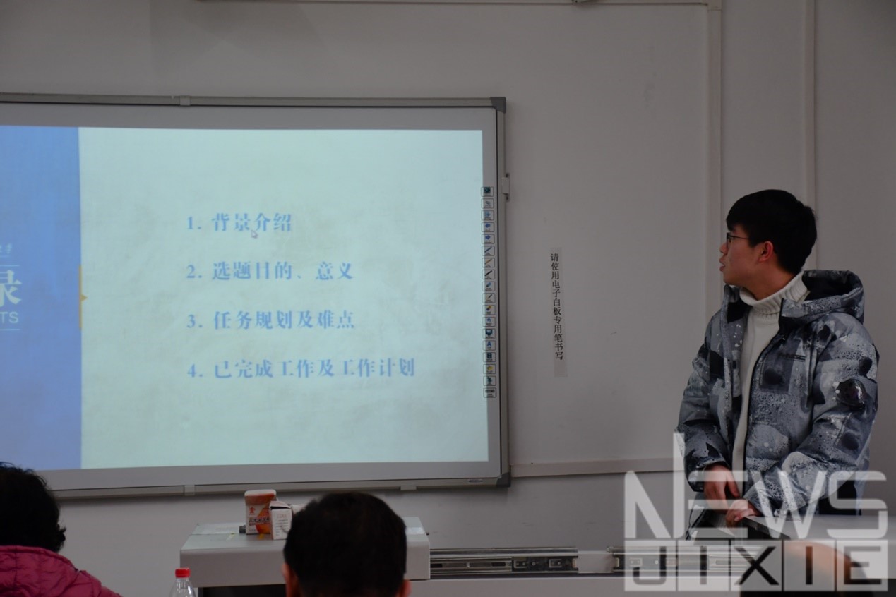 答辩过程中,学生以图文并茂的形式,结合ppt阐述了自己毕业设计(论文)的选题目的、理论框架、研究方向及其实际意义。听完同学们的发言,老师们根据同学们的自述和开题报告内容进行提问,指出研究设计中存在的问题、不足以及考虑不周全的地方,并针对这些问题提出了改进建议。同学们回答老师问题简明准确,虽然仍然存在些许缺陷,但是其总体都得到了老师的肯定。答辩结束后,同学们将进一步修改开题报告并理清毕业设计(论文)的思路,为毕业设计(论文)的完成打下坚实基础。