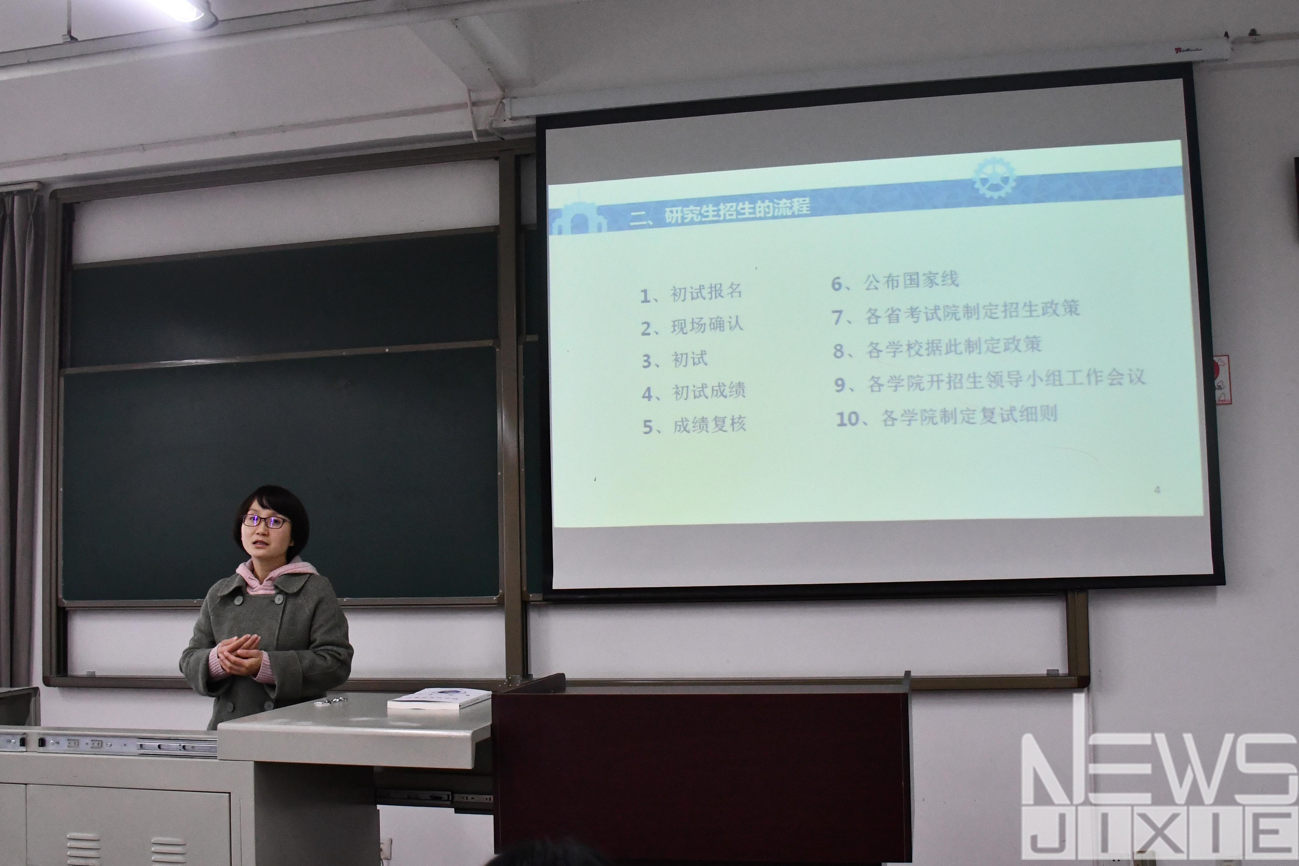 上午10时,讲座正式开始。孟书记对近几年学院研究生复试、调剂中出现的常见问题进行讲解,他提醒同学们要提前准备、主动沟通、做好细节,以良好心态参加研究生复试与调剂。孟书记建议大家提前确定目标,做好充分的准备,并对考研成绩出来后提出两点建:“大部分的人需要做好全力的复试准备,小部分的调剂、复试都要抓。”孟书记指出,在做好全力复试准备之后,也应充分了解复试的各种流程。几十分钟的精彩讲解,让同学们收益良多,全场掌声经久不息。