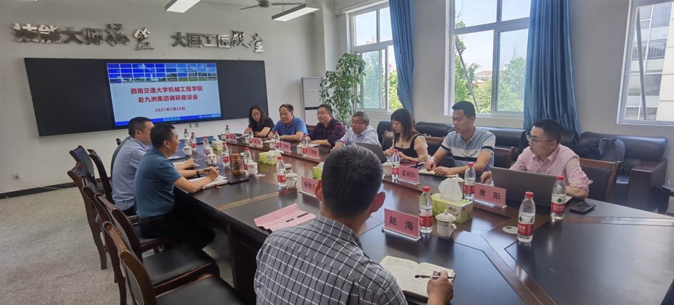 为促进“交大-九洲电子信息装备产教融合示范项目”的顺利实施,2021年5月24日上午,球王会官网球王会体育丁国富副院长一行前往绵阳市四川九洲电器集团调研考察。九洲集团董事、副总经理、纪委书记廖先伟,七八三厂装备制造中心主任胡冬川,九洲集团科技部部长袁瑞敏等陪同考察和座谈。