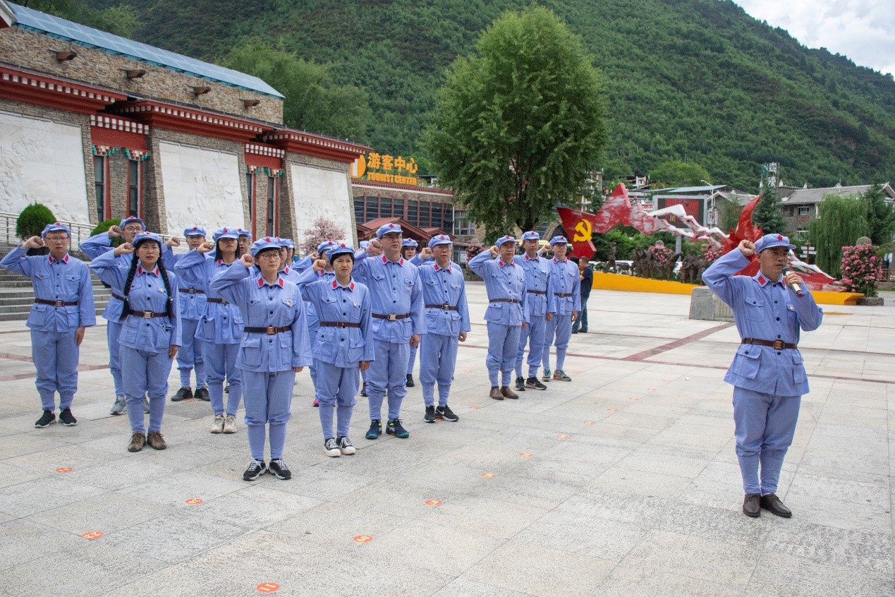 长征在人类革命历史上是一个不可能完成的奇迹,在物资匮乏、战乱动荡的年代,红军革命战士在党的领导下,翻雪山、过草地、吃树皮,为了纪念红军长征精神,修建了马尔康红军长征纪念馆。该馆位于马尔康卓克基全国经典红色旅游景区内,大家依次参观了万里长征、转战阿坝、北上驿站、英名永存、传奇故事、迈向新长征六个展区和“红色足迹”下沉式沙盘。大家通过场馆内丰富的史料和独特的视觉,了解红军长征途经阿坝州,翻雪山过草地和建立革命政权时那段艰苦卓绝的革命奇迹;领略那段风云际汇的悲壮历史,零距离接触那些珍贵的遗址遗迹、革命文物;探寻淹没在民间老人记忆中珍贵史牍残片,以及阿坝州各族人民在长征精神的激励下,自强不息、奋斗不止的生活现状。