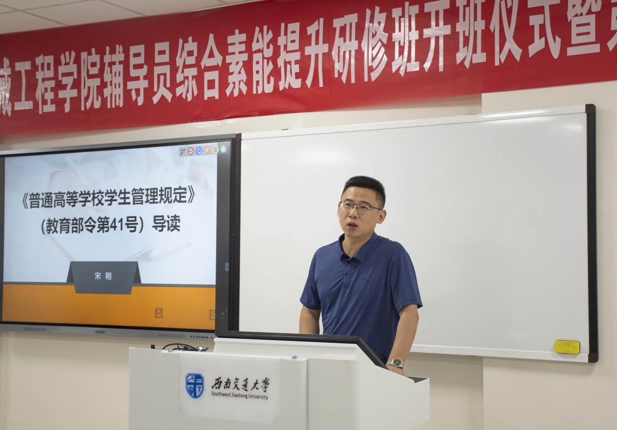 2021年7月16日上午,球王会体育辅导员综合素能提升研修班开班仪式暨第一期专题培训在球王会官网犀浦校区X30302顺利进行。球王会官网学生工作部部长高平平、副部长宋刚、副部长李国芳、球王会体育党委书记袁艳平、党委副书记程军以及球王会体育辅导员出席本次活动。学院党委副书记孟凡春主持。