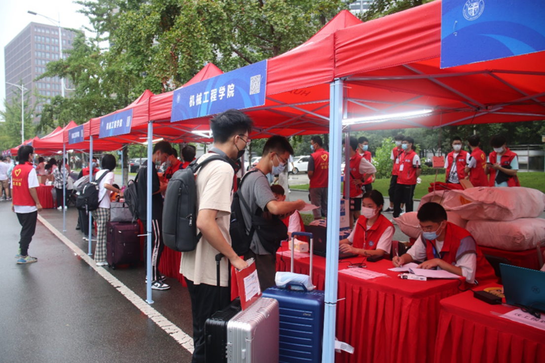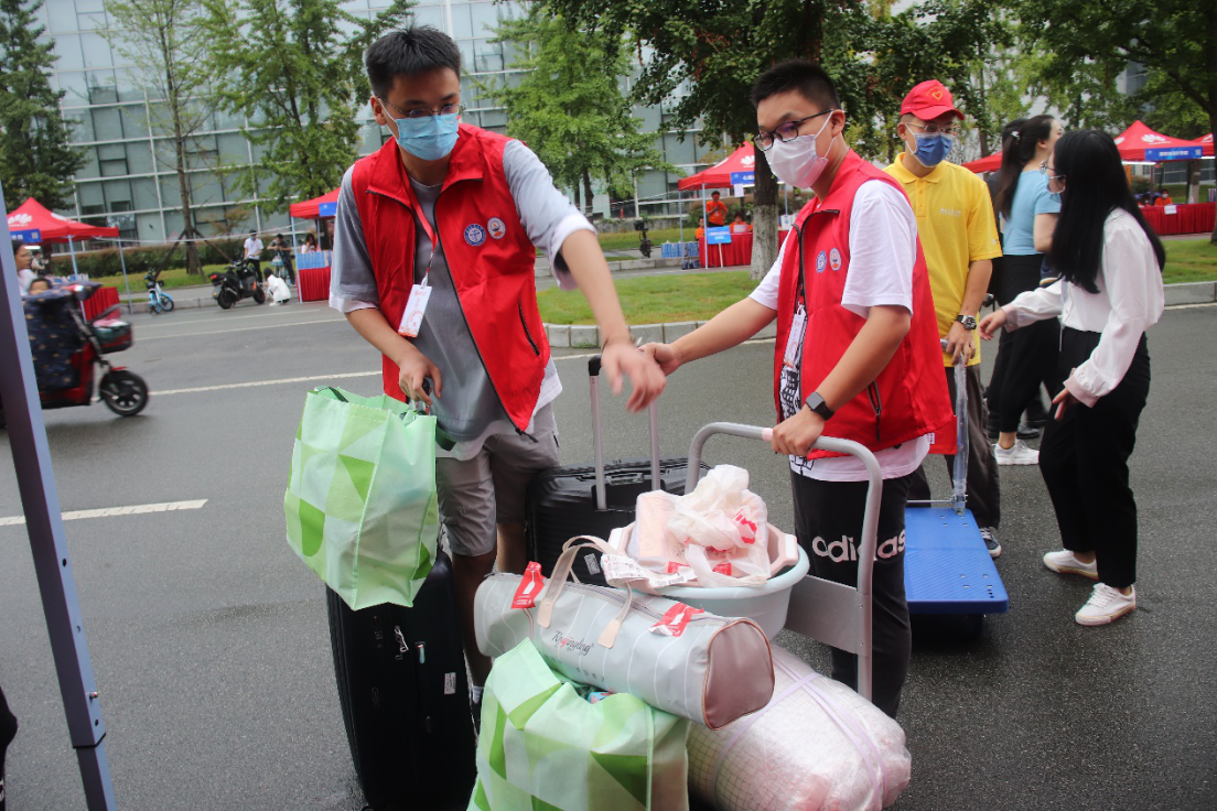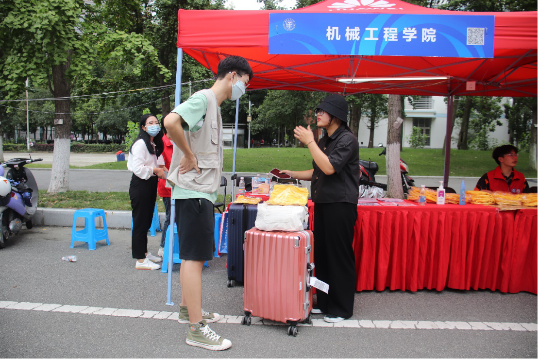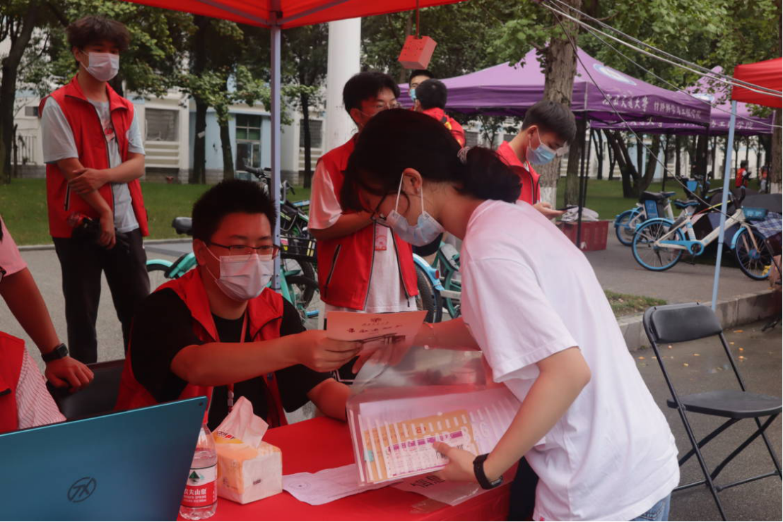 在志愿者的帮助下,新生顺利报道,并领取了新生大礼包,其中包括文化衫、入学手册、新生学习指南、扬华人物等交大专属资料。同时,我们为部分经济困难的学生提供生源地贷款,方便顺利入学。走完报道流程之后,由志愿者帮忙搬运行李,并带领新生去往宿舍,熟悉校园环境。