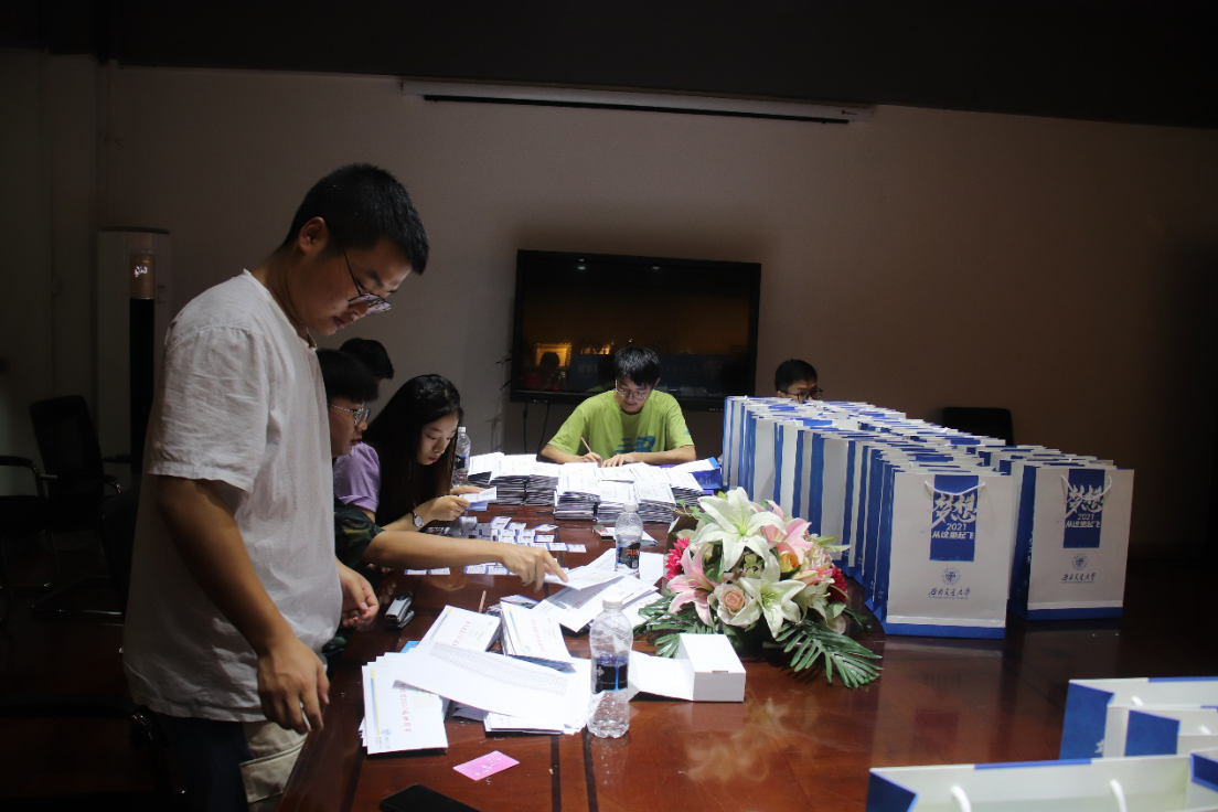 学院的领导、辅导员老师、以及志愿者们付出了巨大努力。我们的迎新准备自8月27日便有条不紊的开始进行。8月30日上午11点,志愿者们在三栋楼下搬运物资。 8月31下午,志愿者为新生装配一卡通,水卡等,并按学号排序,以便报到时发放。8月31日,为新生装配开学纪念礼品,其中包含了印有学号姓名的钥匙扣,以及纪念书签和卡袋。