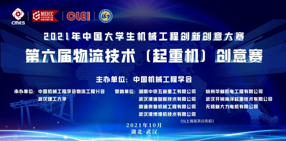 中国大学生机械工程创新创意大赛第六届物流技术(起重机)创意赛是中国机械工程学会主办的“中国大学生机械工程创新创意大赛”系列专业赛事之一,由中国机械工程学会物流工程分会与武汉理工大学、球王会官网、太原科技大学、大连理工大学、同济大学等五所高校共同发起,2016年开始举办,已入选中国高等教学学会发布的《2015-2019年全国普通高校学科竞赛排行榜》《2020年全国普通高校学科竞赛排行榜》竞赛项目。